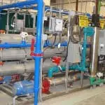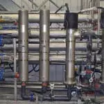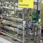 The resulting product stream is high purity water and a concentrate stream which is usually recycled back to an upfront RO system for reprocessing.